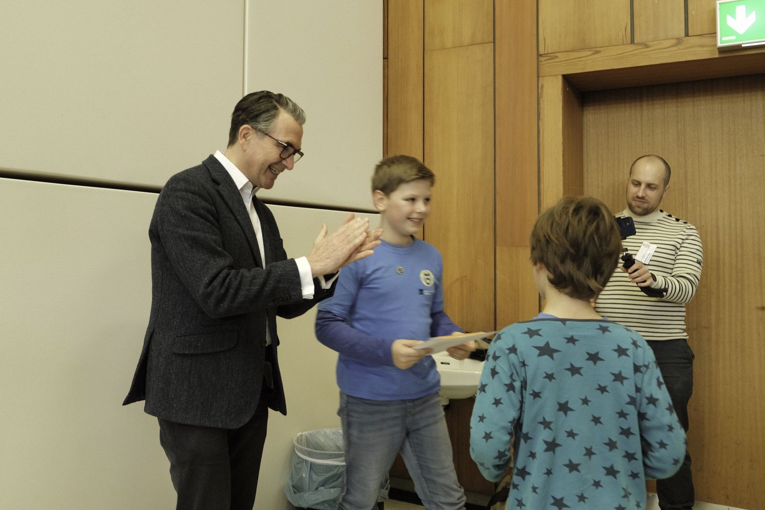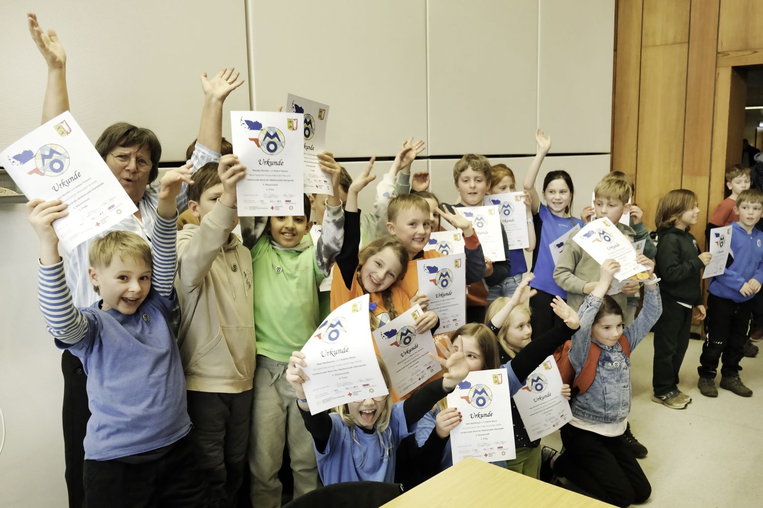 Alle Fotos sind urheberrechtlich geschützt. Die Weiterverbreitung der Fotos zum Bsp. in sozialen Netzwerken, ihre Vervielfältigung oder kommerzielle Nutzung ist nur nach Absprache mit den Veranstaltern der Mathematik-Olympiade gestattet. Bei nicht-kommerzieller Nutzung ist der jeweilige Name des Bildautors anzugeben.